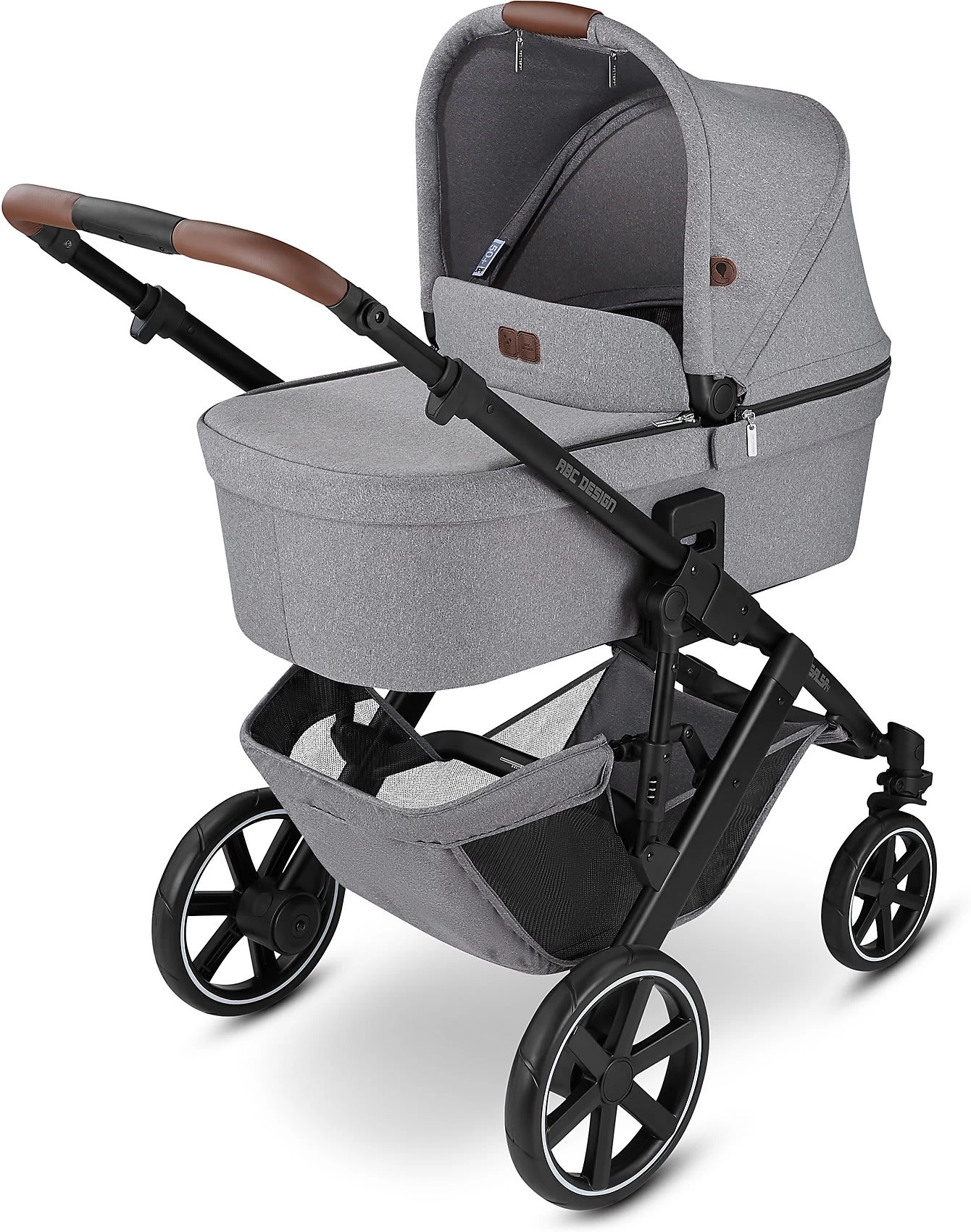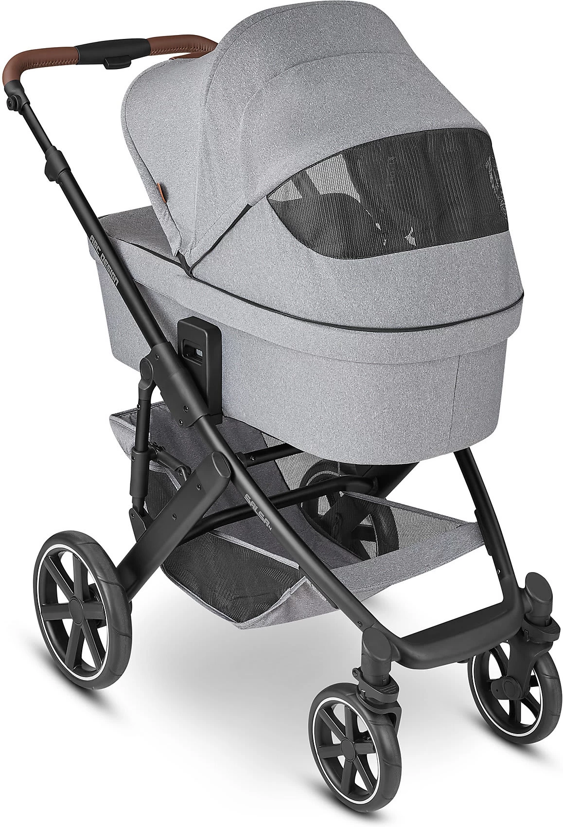 Bei diesem Kombikinderwagen „Salsa 4“ aus dem Hause ABC Design trifft funktionaler Komfort auf tolles Aussehen. Für eine stets angenehme Fahrt sorgt dabei die integrierte Federung, während die Feststellbremse und die abnehmbaren EVA-Schwenkräder Sicherheit bieten.