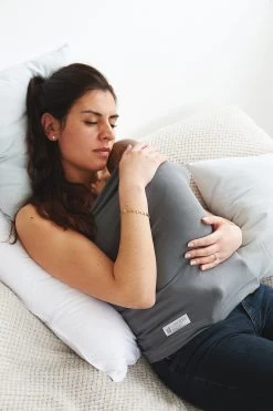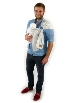 Ring Sling Tragetuch „DOVE“ Hellgrau/ Naturweiß Gestreift Mit Silbernen Ringen