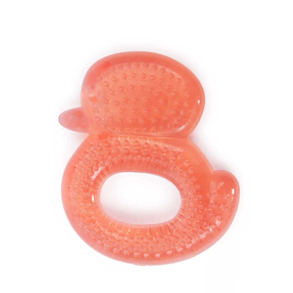Der Beißring Ente T1199 rot von Cangaroo erleichtert Ihrem Baby das Zahnen durch kühlen der empfindlichen Stellen im Kiefer. Dazu legen Sie den Beißring einfach in den Kühlschrank, bis die aus destilliertem Wasser bestehende Flüssigkeit im inneren des Beißrings ausreichend gekühlt ist. Der Beißring massiert den Gaumen und das Zahnfleisch, dies sorgt unter der Kühlung für eine wohltuende Schmerzlinderung. Die Anregung des Speichelflusses beim Kauen wirkt zudem vorbeugend gegen Karies. Zur Reinigung den Beißring mit heißem Wasser abspülen. Bitte beachten Sie, dass Sie den Beißring nicht ins Gefrierfach legen sollten oder über 60° C erhitzen.