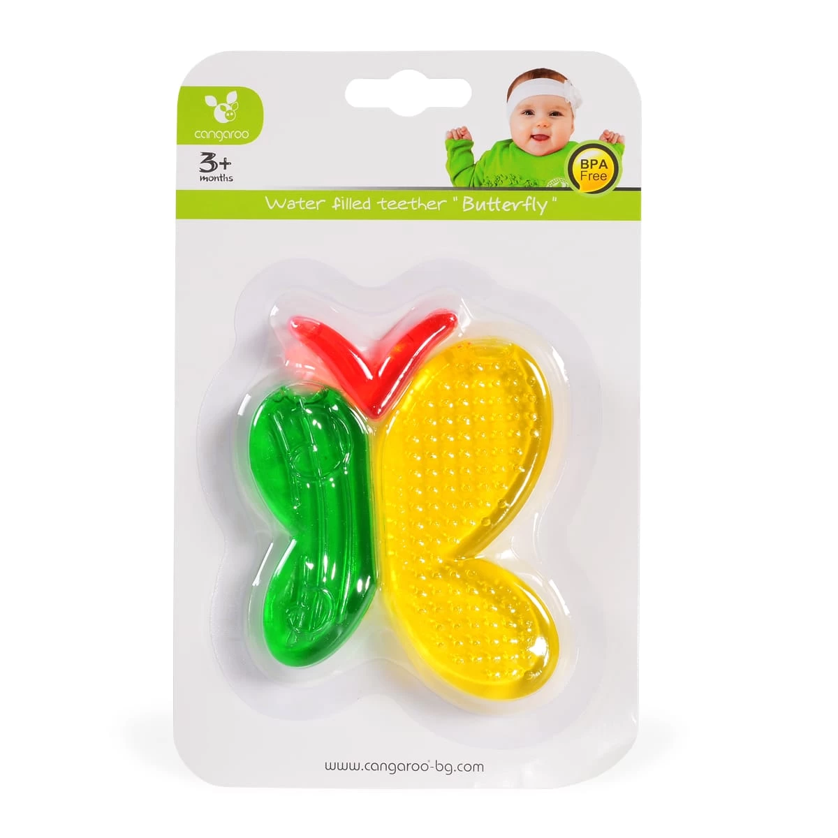 Der Beißring Schmetterling T2301 von Cangaroo erleichtert Ihrem Baby das Zahnen durch kühlen der empfindlichen Stellen im Kiefer. Dazu legen Sie den Beißring einfach in den Kühlschrank, bis die aus destilliertem Wasser bestehende Flüssigkeit im inneren des Beißrings ausreichend gekühlt ist. Der Beißring massiert den Gaumen und das Zahnfleisch, dies sorgt unter der Kühlung für eine wohltuende Schmerzlinderung. Die Anregung des Speichelflusses beim Kauen wirkt zudem vorbeugend gegen Karies. Zur Reinigung den Beißring mit heißem Wasser abspülen. Bitte beachten Sie, dass Sie den Beißring nicht ins Gefrierfach legen sollten oder über 60° C erhitzen.