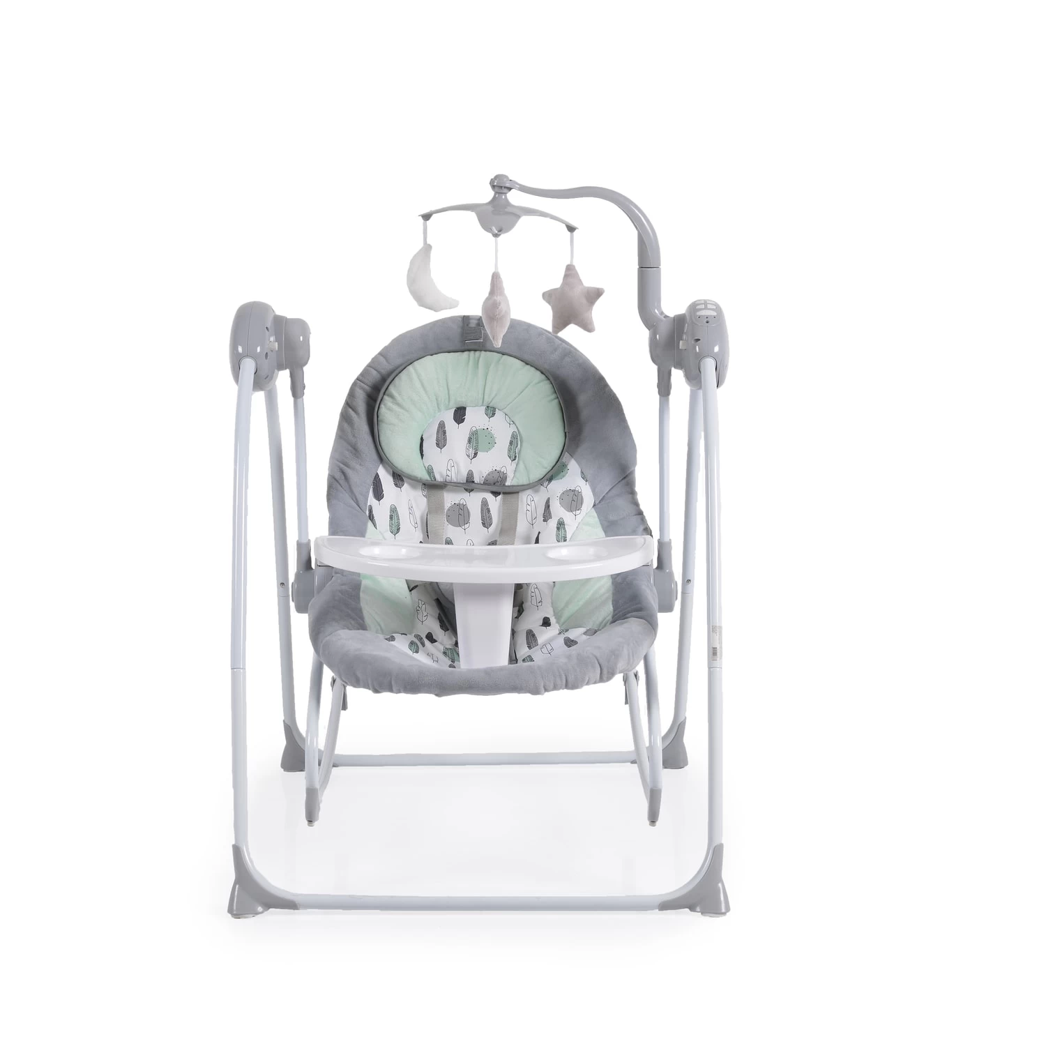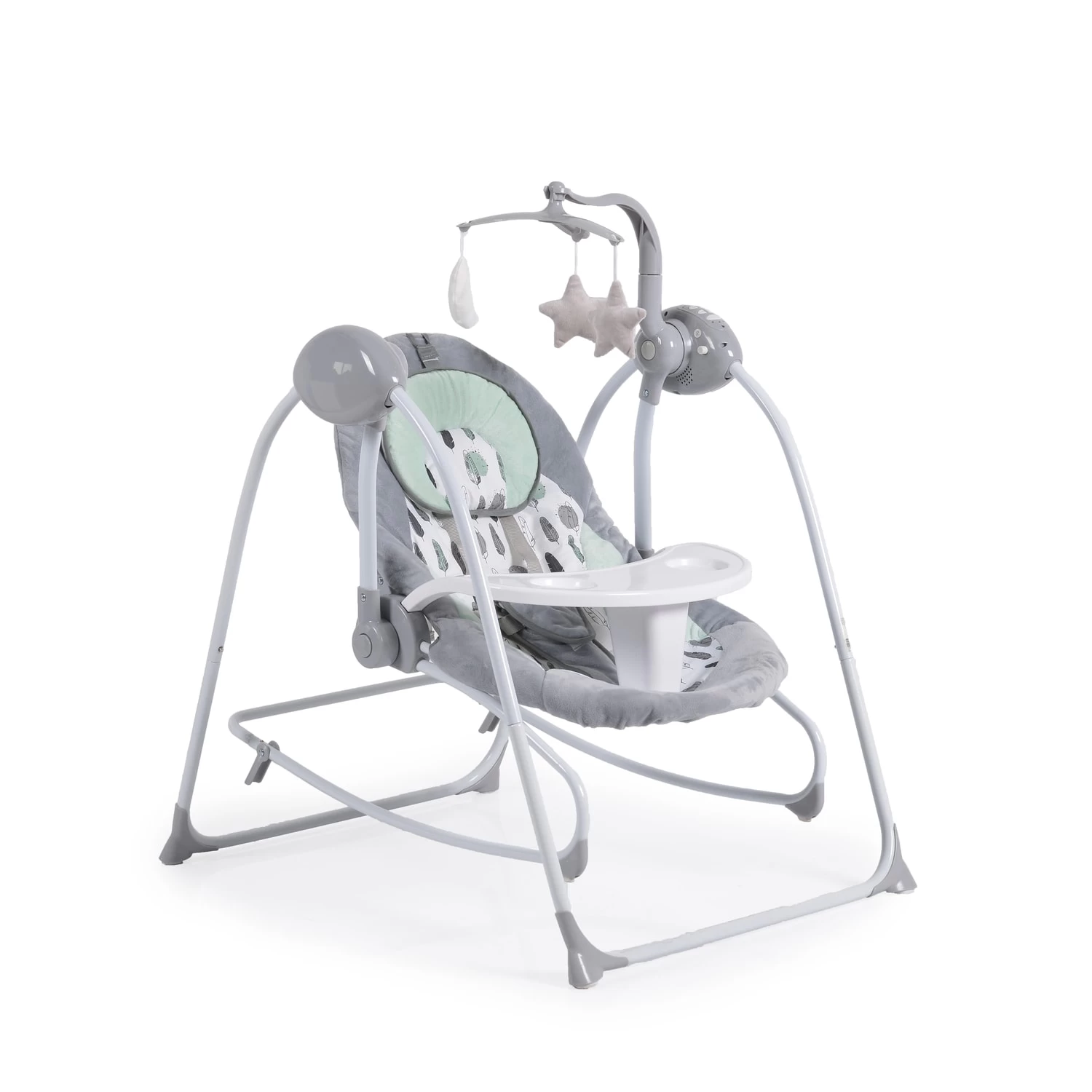 Die Babywippe Rhea 2 in 1 von Moni ist genau das Richtige für Sie und Ihr Kind! Sie verfügt über fünf Schwinggeschwindigkeiten und einem Timer mit drei verschiedenen Schwingzeiten. Die Wippe spielt verschiedene Melodien, die Ihr Kind beruhigen. Ein weiches Kissen unterstützt den Kopf Ihres Babys. Der Sicherheitsgurt sorgt dafür, dass Sie sich auch mal kurz ohne Angst von der Wippe entfernen können. Die niedlichen Plüschtiere animieren zum Greifen und fördern die motorische Fähigkeiten. Wird die Wippe nicht benötigt, kann sie Platzsparend zusammengeklappt und verstaut werden.