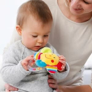 Der farbenfrohe und flauschige Greifling Blume mit Rasselring von Fehn bietet viele lustige Funktionen und sorgt für ständig neue Spielvariationen. Es macht dem Baby Spaß, daran immer neue Details zu entdecken. Greifling mit Rasselring ca. 14 cm mit farbigen Kugeln im Inneren rasselt knistert in dem Blütenblättern ab dem ersten Lebenstag geeignet aus Softvelours/Nicki waschbar (Handwäsche) Die bunte Blume mit dem niedlichen Gesicht lädt das Baby sofort zum Greifen und Tasten ein. Beim Berühren der Blätter fangen diese sofort zu knistern an. Der transparente Greifring ist mit vielen farbigen Kügelchen gefüllt, die bei jeder Bewegung spannende Geräusche erzeugen. Tolle Muster und Formen sorgen für anhaltende Aufmerksamkeit und Spielfreude. Die abwechslungsreichen Überraschungen am Fehn Greifling Blume mit Rasselring fördern auch die wichtige Hand-Augen-Koordination.