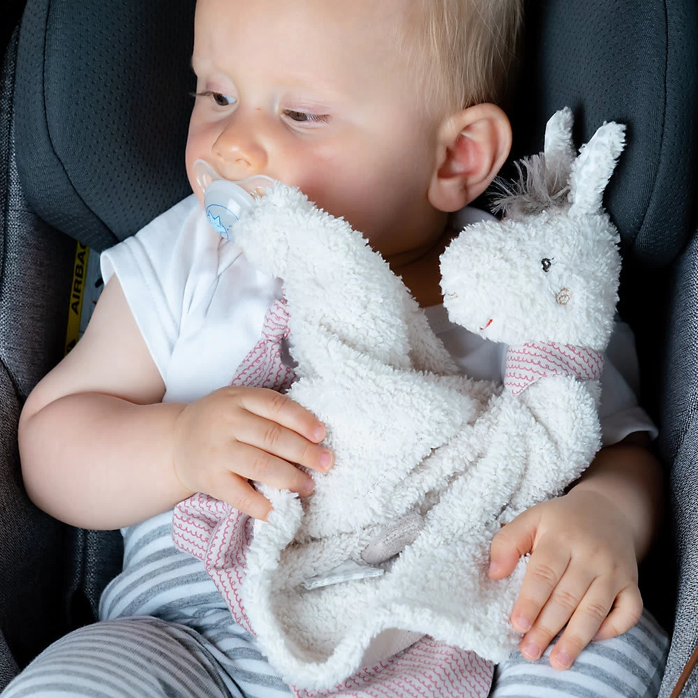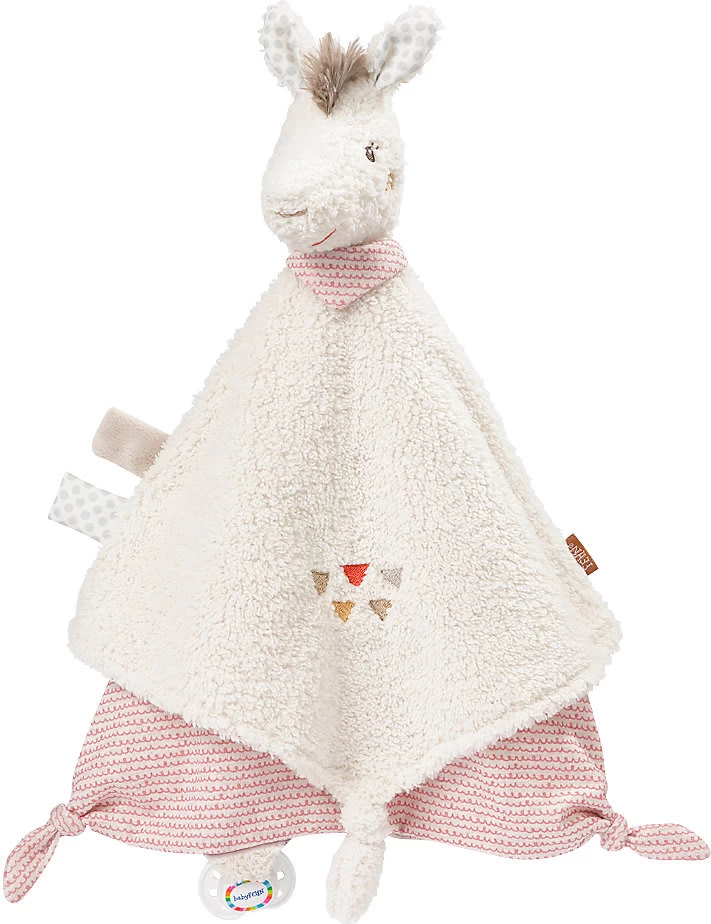 Das niedliche Schmusetuch mit Lama-Köpfchen aus der Peru Kollektion von Fehn ist Tröster, Wärmespender, Einschlafhelfer und Kuschelfreund in einem und wird zum treuen Begleiter ob Zuhause oder auf Reisen. Schmusetuch Lama Deluxe Peru, 34cm mit Befestigungsring für Schnuller ab Geburt Obermaterial: Bouclette, Jersey, Softvelours, Stoff bei 30°C waschbar Der praktische Befestigungsring sorgt außerdem dafür, dass auch der Schnuller auf größten Abenteuern nicht verloren geht! Beim Einschlafen ist das niedliche Kuscheltuch eine echte Hilfe – tagsüber laden die kuschelweichen Materialien, der Kopf und die abgenähten Enden zum Greifen, Fühlen und Knuddeln ein, sodass das niedliche Lama bald nicht mehr aus der Hand gelassen wird.