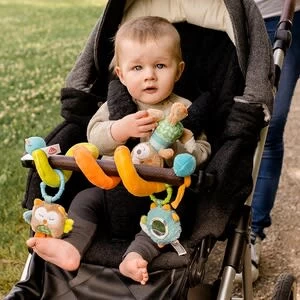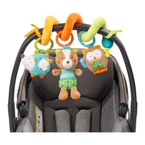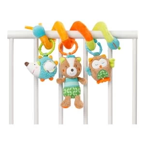 Farbenfroh, kuschelweich und mit großem Unterhaltungswert bringt die Activity-Spirale aus der Kollektion Sleeping Forest von Fehn Babyaugen zum Leuchten. ab Geburt geeignet Größe: 30 cm vielseitiger Einsatz am Kinderwagen, Babyschale oder Gitterbett Der niedliche Igel mit Rassel, der entzückende Fuchs mit Dingdong und die bezaubernde Eule mit Quietsche laden zum Greifen, Spielen und Entdecken ein und fördern erste Hand-Auge-Koordination. Mit dem kleinen Spiegel am Igel können Babys spielerisch sich selbst entdecken. Der schöne Mix aus Funktion und kindgerechten Formen und Farben sorgt dafür, dass Dein Baby seine Spirale schnell lieb gewinnen wird. Die Spirale kann ganz einfach um Babyschale, Kinderwagen, Laufgitter und Bettchen gewickelt werden und sorgt so für gute Laune und jede Menge Spielspaß zuhause und unterwegs. Die drei lustigen Figuren lassen sich hin- und herschieben und können so variabel den Abständen der Gitterstäbe angepasst werden.