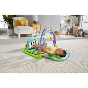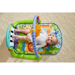 Der Spielbogen Rainforest Piano-Gym von Fisher-Price enthält eine Babydecke und begeistert Deinen Mini mit zahlreichen Beschäftigungsmöglichkeiten. Spielbogen Rainforest Piano-Gym von Fisher-Price 5 Hängespielelemente (Biene mit Klingel, Knisterblätter, Rassel, Beißring, Spiegel), Piano mit Ein-/Ausschalter und Lautstärkeregler, inklusive Batterie (2 x 1,5 V AA) Musik Textil und Kunststoff ab Geburt geeignet Der Spielbogen wächst mit Deinem Baby mit. Die Babydecke ist besonders weich und mit bunten Tier- und Natur-Motiven gestaltet. Dein Mini kann sowohl in der Rücken- wie auch in der Bauchlage und sogar im Sitzen mit den Elementen spielen. Die großen Pianotasten unterstützen seine noch grobmotorischen Fähigkeiten: Wenn sich das Baby streckt und die Tasten mit den Füßen berührt, erklingt Musik. Das Piano enthält einen Ein-/Ausschalter und einen Regler, mit dem Du die Lautstärke anpassen kannst. Die Musik stimuliert den Hörsinn Deines Babys. Das Piano ist abnehmbar und kann einzeln bespielt werden. Der Spiegel fördert die Selbstwahrnehmung Deines Babys. Der Spielbogen enthält noch vier weitere abnehmbare Hängeelemente. Sie ermuntern Deinen Nachwuchs zum Greifen, Ertasten und Festhalten und machen lustige Geräusche. So macht die Rassel immer wieder neugierig. Die Biene enthält eine Klingel. Knisterblätter animieren Dein Kind zu intensiver Beschäftigung. Wenn die ersten Zähne wachsen, lädt der Beißring zum Herumkauen ein.