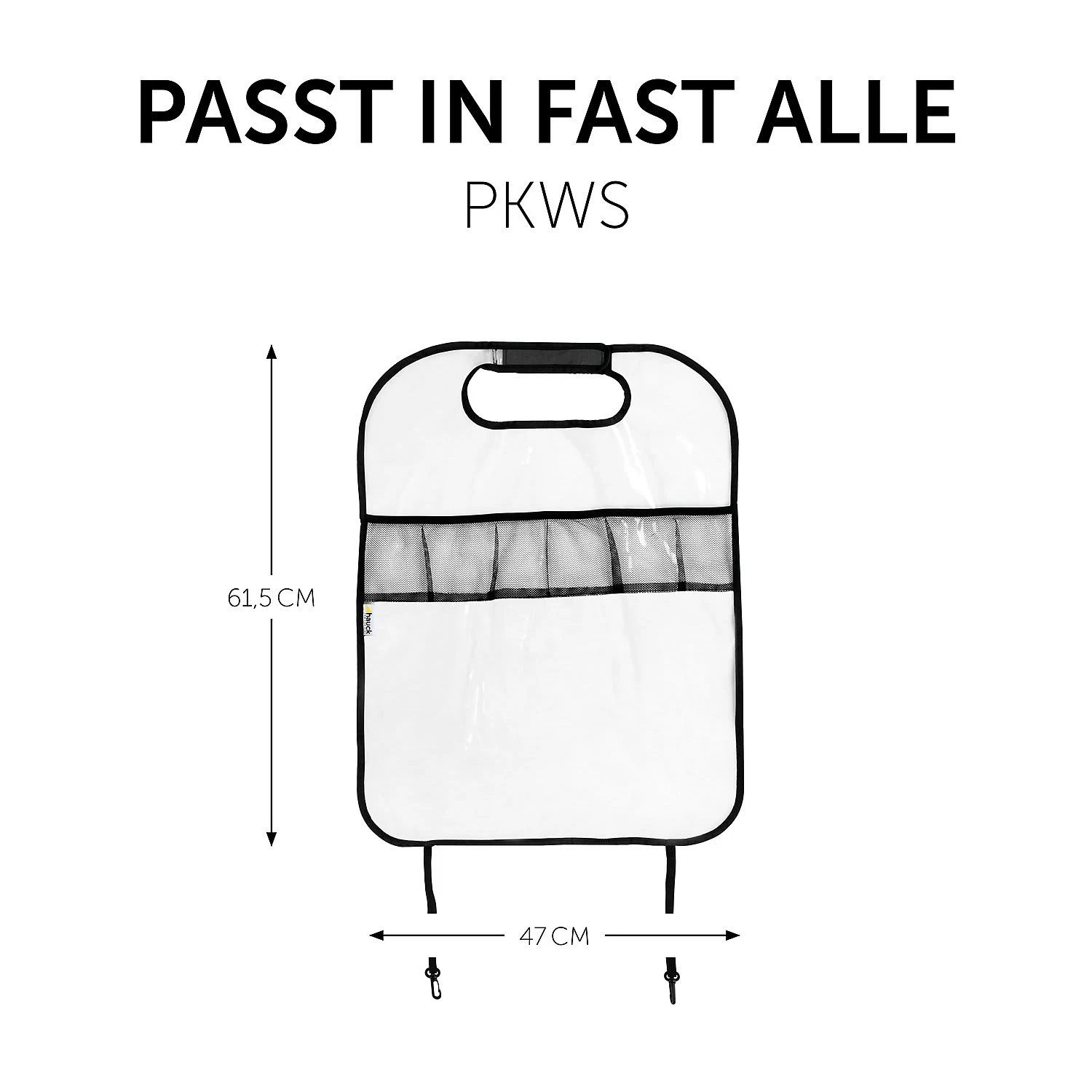 Der Auto-Rückenlehnenschutz von Hauck schützt nicht nur die Rückenlehne vor Schmutz und Kratzern. Zusätzlich bietet der einfach zu befestigende Rückenlehnenschutz eine Netztasche zur Aufbewahrung von kleinen Dingen, die unterwegs benötigt werden. Das hochwertige, UV-beständige Material ist reißfest und abwaschbar.