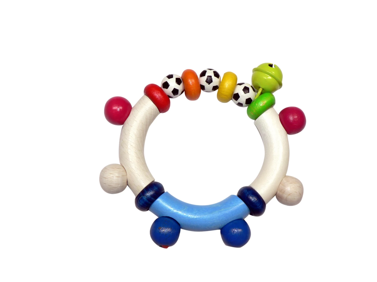 farbenfrohe und kindgerechte Rassel mit Holzelementen