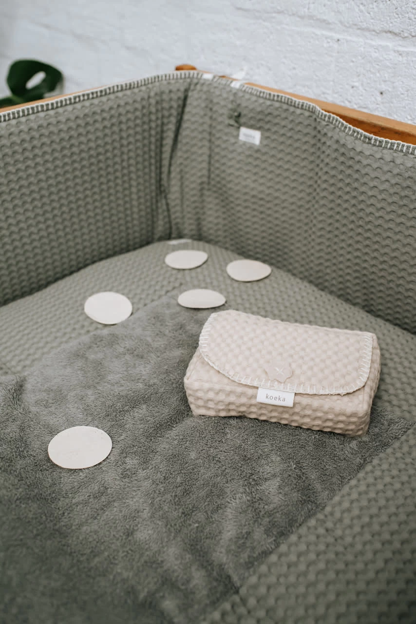Ein Laufstall ist nicht komplett ohne eine Laufstalldecke, auf der dein Baby schön weich liegen und spielen kann. Eine Laufstalldecke ist ein unverzichtbares Begleitprodukt für den Laufstall, kann aber auch als Spielmatte auf dem Boden verwendet werden. Da die Füllung mit den Nähten zusammengenäht ist, bleibt sie beim Waschen an Ort und Stelle. Koeka stellt Laufstalldecken in verschiedenen Formen, Materialien, Stilen und Farben her, so dass jeder eine Laufstalldecke finden kann, die zur Einrichtung passt. Die beiden Seiten dieser Koeka Laufstalldecke sind unterschiedlich, so dass man tatsächlich zwei Laufstalldecken in einem hat! Diese Laufstalldecke ist verfügbahr in zwei Grössen 75x95cm und 80×100.