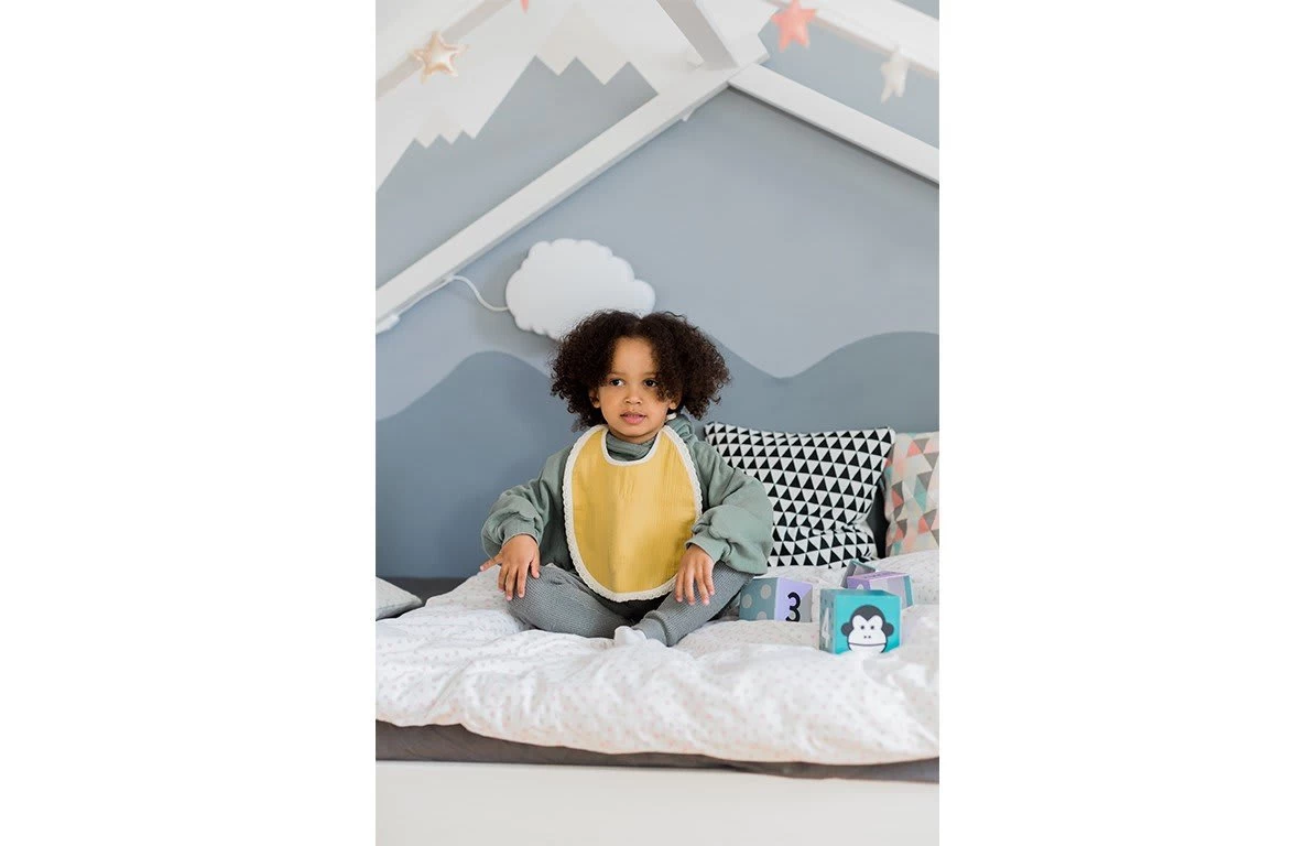 Das Kindsgut Musselin Lätzchen Paris verbindet verspieltes Design und schlichte Farben mit einem wundervoll weichen Frottee und Musselin Stoff aus 100% OEKO-TEX zertifizierter Baumwolle (STANDARD 100 by OEKO-TEX®). Es ist die perfekte Unterstützung für Euer Kind am Esstisch. Durch den weichen Stoff sitzt es sehr angenehm und schränkt die Bewegungsfreiheit nicht ein. Durch die vorhandenen Bänder kann die Größe des Lätzchen bequem angepasst werden. Es kann auf beiden Seiten verwendet werden und ist somit vielseitig einsetzbar. Mit diesem Lätzchen wird jede Mahlzeit zum Festmahl und es ist nicht schlimm wenn mal etwas daneben geht.