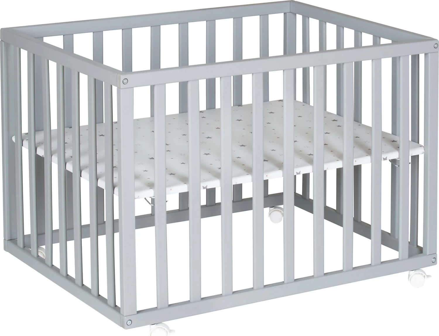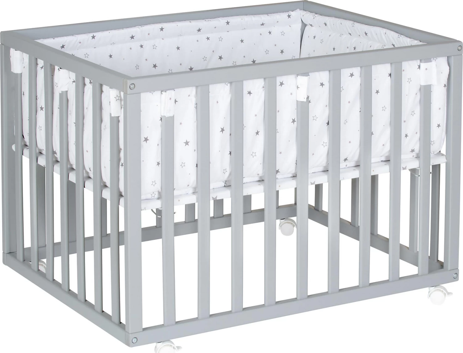 Im Laufgitter Scandic der Marke Schardt kann das Baby spielen, krabbeln oder üben, sich hochzuziehen. Dabei ist es auf der gepolsterten Fläche schön bequem. Der Boden kann je nach Alter des Kindes in der Höhe verstellt werden. So können Eltern das Baby rückenschonend hineinsetzen. Durch die Rollen können sie das Laufgitter überall in der Wohnung mit hinnehmen, damit sie das Kind in der Nähe haben.