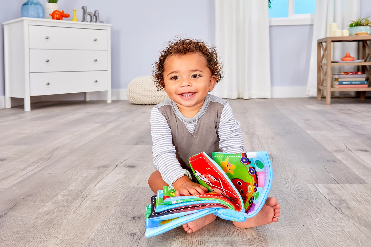Das Little Baby Bum Glitzer-Stern Mitsingbuch von Little Tikes ist eine tolle Beschäftigung. Die zehn bunten Seiten zeigen süße Motive, passend zu den abgespielten Liedern und schulen Formen, Farben und Tiere. Die Charaktere sind bekannt aus der beliebten Online-Serie Little Baby Bum. Das süße Plüsch-Musikbuch ist elektronisch und spielt fünf verschiedene deutsche Lieder ab. Drückt man den Glitzer-Stern, wird das Lied abgespielt.