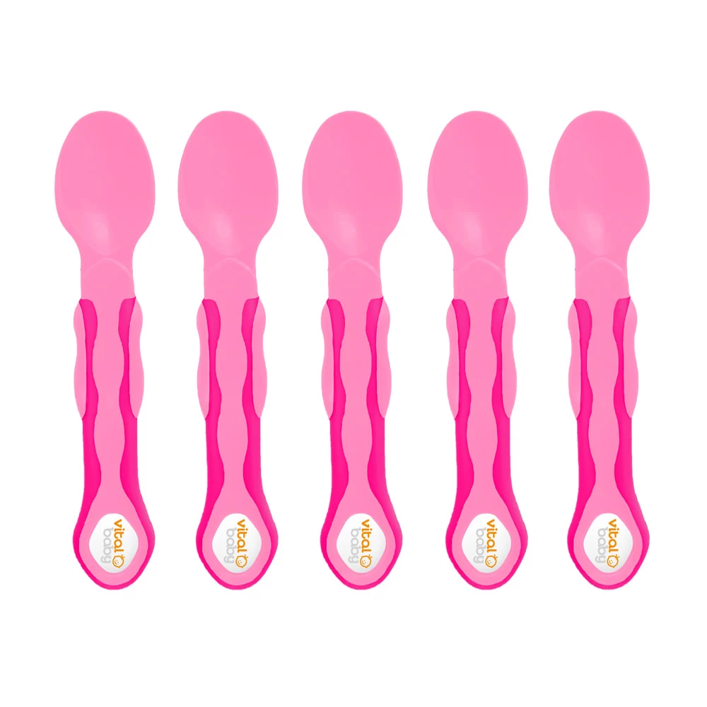Durch seine handliche Form, die weichen Einkerbungen am Löffelgriff und die gaumenfreundliche Löffelschale, wird das Kleinkind unterstützt selbstständiges Essen zu erlernen.