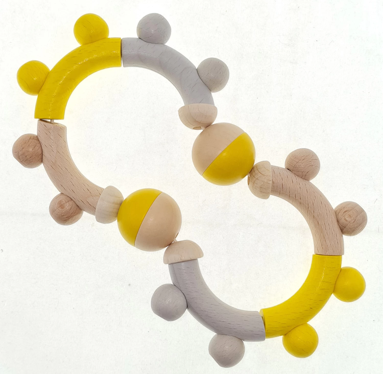 Die hochwertige Holzrassel fördert die Fantasie und besticht durch moderne Farbgebung. Sie trainiert die Geschicklichkeit des Babys auf spielerische Weise.