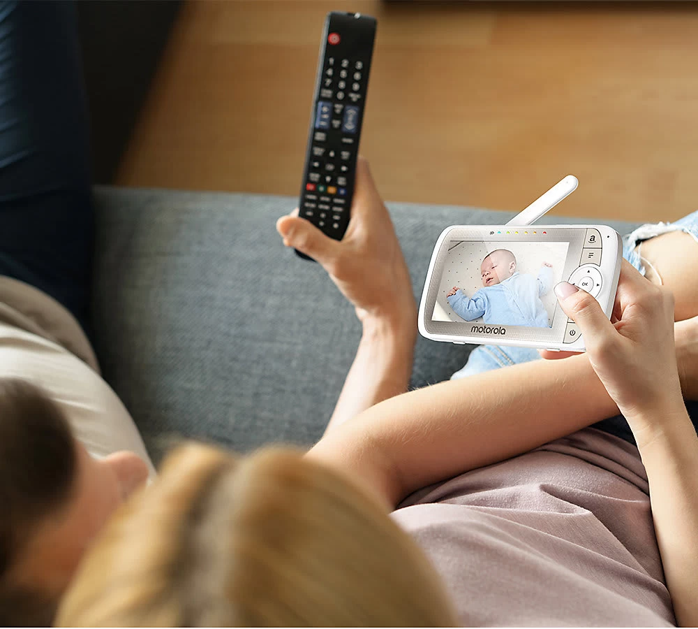 Mit dem Babyphone MBP950 von Motorola können Eltern ihr Kind nicht nur hören, sondern auch sehen, auch über größere Entfernungen hinweg. Die Gegensprechfunktion ermöglicht es ihnen außerdem, mit dem Kind zu kommunizieren und es aus der Ferne zu beruhigen. Dank der Infrarot-Nachtsichtfunktion können sie auch bei Dunkelheit sehen, was im Kinderzimmer passiert. Ebenfalls lässt sich die Raumtemperatur überwachen.