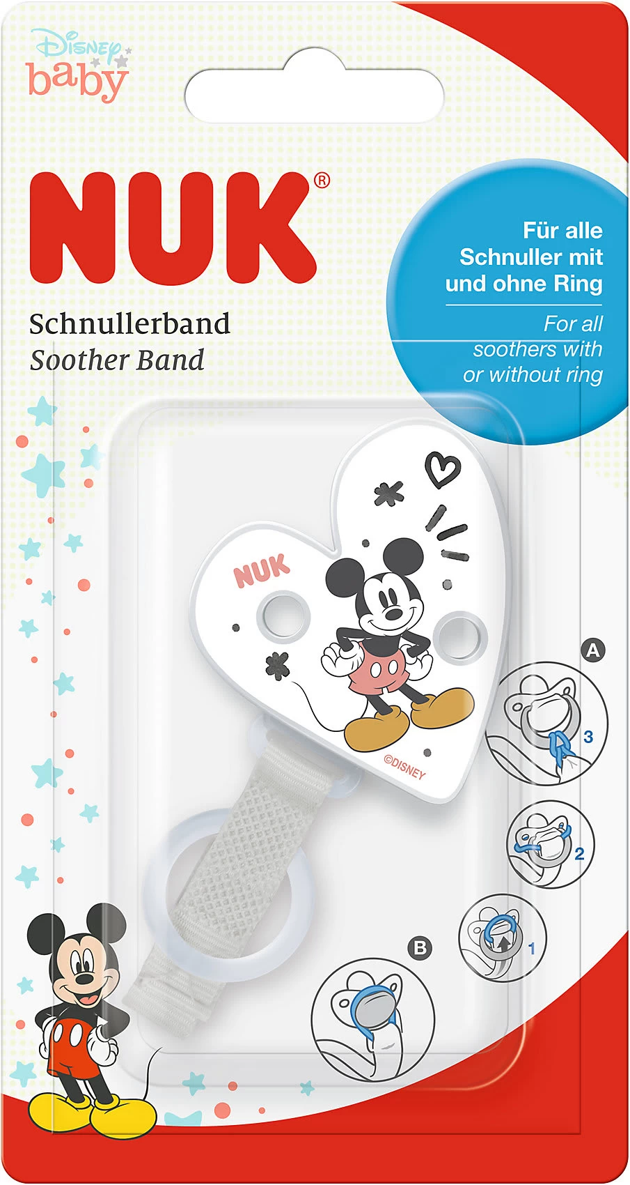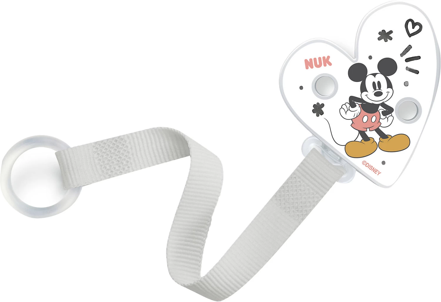 Das NUK Disney Mickey Schnullerband sieht süß aus und verhindert ein Herunterfallen des Schnullers. Mit einem Klick lässt es sich einhändig an der Kleidung des Kindes befestigen. So bleibt der Schnuller stets in Reichweite.