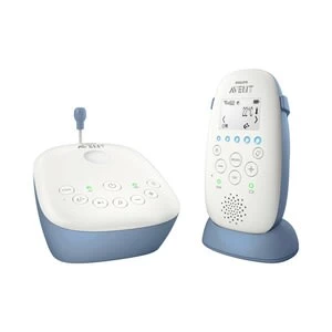 100 % privat und störungsfrei, kristallklarer Klang, bis 24 Stunden Überwachung, Sternenhimmel-Projektion, Nachtlicht – das PHHILIPS AVENT Babyphone SCD735/26 ist ein Allrounder, den Du und Dein Kind lieben werdet! Reichweite: bis 330 m (Innenräume bis 50 m, im Freien bis 330 m) Betriebsart: Netzteil, Batterien Funktionen: Smart ECO-Modus, Akkulaufzeit 25 Stunden, Geräuschpegelanzeige, Verbindungsanzeige, Sternenhimmel-Projektion, Nachtruhe-Modus, Nachtlicht, Schlaflieder, Gegensprechfunktion, Temperaturüberwachung Lieferumfang: 2 AA-Batterien, 2 Netzteile, Babyeinheit, Elterneinheit, Ladestation, Gürtel-Clip Die DECT-Technologie gewährleistet einen kristallklaren Klang. So hörst Du jedes Geräusch, das Dein Baby macht. Zusätzlich bietet die DECT-Technologie eine sichere und private Verbindung, ohne Interferenzen von anderen Babyphones, schnurlosen Telefonen oder Handys. Dank Smart ECO-Modus arbeitet das Babyphone besonders energiesparend. Der Modus reduziert die Tonübertragung automatisch – so wird auch die Akkulebensdauer erhöht. Je näher Du bei Deinem Baby bist, desto weniger Energie wird für die Verbindung gebraucht. Flexibel bleiben: Das PHHILIPS AVENT SCD735/26 bietet im Freien eine Reichweite von bis zu 330 Metern, in Innenräumen bis zu 50 Metern. Die wiederaufladbare Elterneinheit sorgt mit einer Akkulaufzeit von bis zu 24 Stunden für maximale Flexibilität. Nützlich: Fünf Geräuschpegelanzeigen informieren Dich über Geräusche im Kinderzimmer. Auch dann, wenn die Elterneinheit stummgeschaltet ist. Die Verbindungsanzeige informiert, wenn sich das Babyphone außer Reichweite befindet. Der Temperatursensor ermöglicht eine Überwachung der Raumtemperatur. Beruhigende Features: Mit der tollen Sternenhimmel-Projektion findet Dein Baby schnell und sanft in den Schlaf. Sie lässt sich bequem über Eltern- oder Babyeinheit aktivieren. Ein tolles Plus sind Nachtlicht-Funktion und fünf beruhigende Schlaflieder. Manchmal braucht Dein Kind auch nur den beruhigenden Klang Deiner Stimme. Mit einem Klick kannst Du mit Deinem Baby sprechen – egal, wo im Haus Du gerade bist.