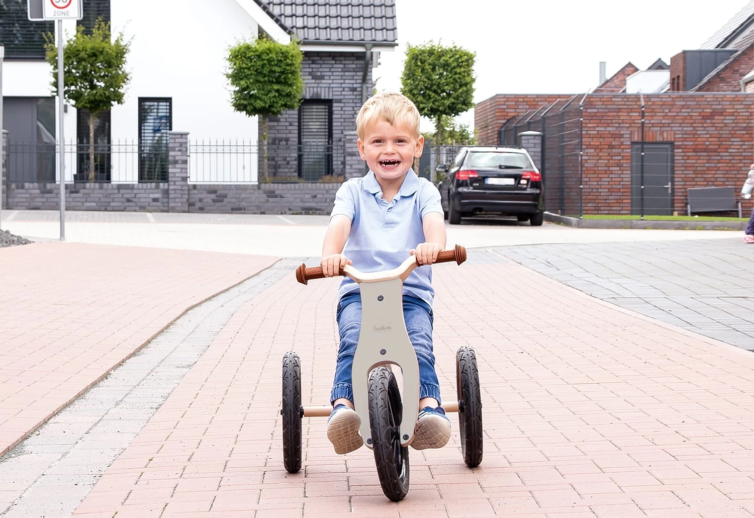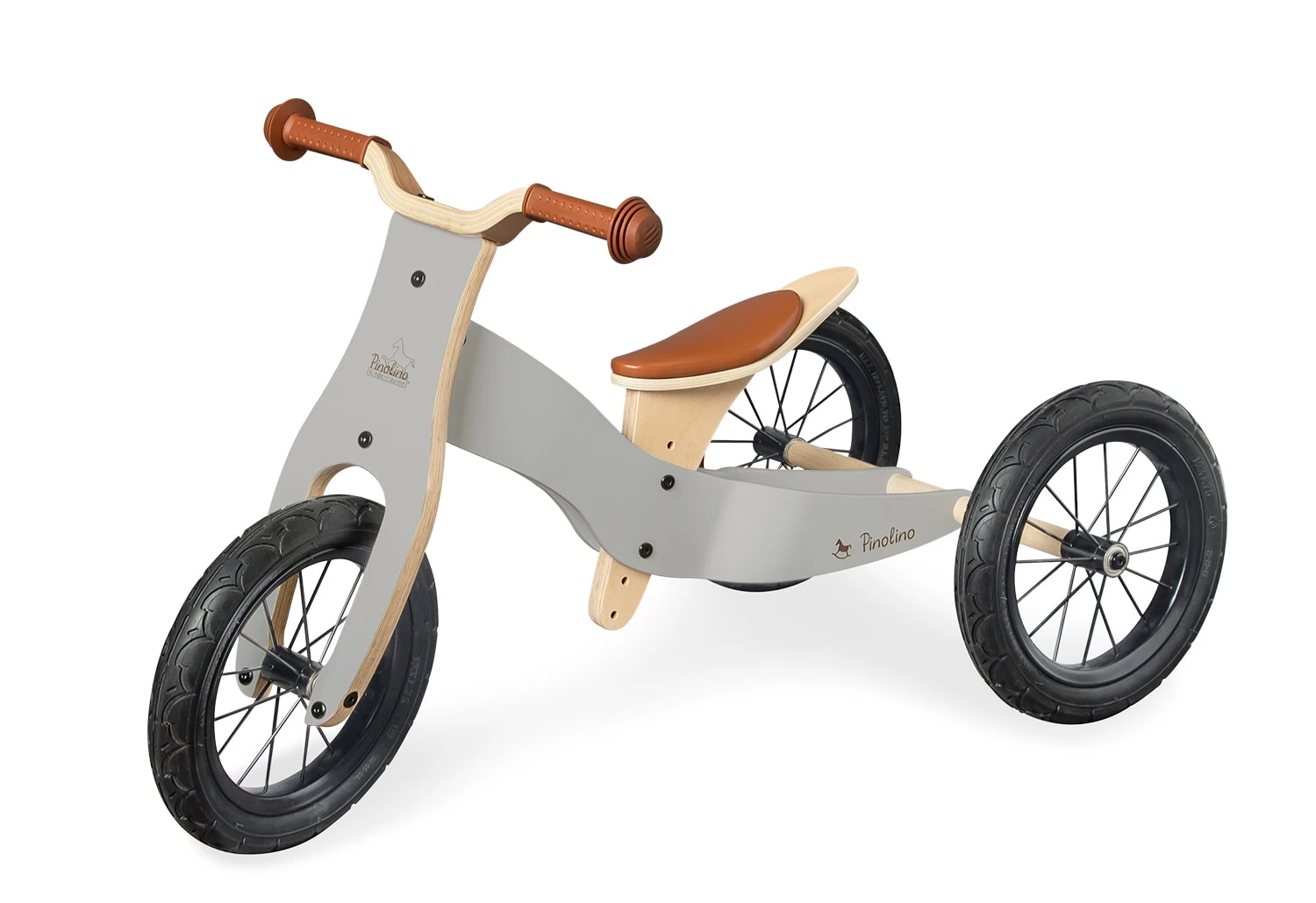 Laufdreirad ‚Oskar‘, umbaubar zum Laufrad, mit 4-fach höhenverstellbarem Sattel (von 31 cm auf 33 cm, 36 cm und 39 cm), EVA-Softbereifung. Massiv: Buche, grau und klar lackiert, L 93 x B 48 bzw. 39 (als Laufrad) x H 54 cm. Durch den 4-fach höhenverstellbaren Sattel passt sich die Laufhilfe individuell an die Größe der Kinder an und ist so über viele Jahre ein toller Begleiter. Die unplattbaren und profilierten Reifen federn kleinere Erschütterungen hervorragend ab. Das Dreirad kann ganz einfach zum praktischen Laufrad umgebaut werden, wenn die Kids sich immer sicherer fühlen. Durch die Stahlfelgen wird eine besonders hohe Stabilität und Sicherheit gewährleistet. Das Rad wird für Kinder ab 2 Jahren empfohlen. Das Holzdreirad sorgt für großen Fahrspaß bei längeren Spaziergängen durch die Natur und fördert gleichzeitig das Gleichgewicht und die Motorik. Die Laufhilfe ist eine tolle Geschenkidee für Mädchen und Jungen zum Geburtstag oder zu Weihnachten .Pinolino erfüllt seit 1997 Kinderträume und vertreibt Kindermöbel, Accessoires und Spielwaren. Das deutsche Unternehmen verwendet nur für Kinder geeignete Lacke, Lasuren und Öle und bietet viele FSC®-zertifizierte Produkte an.