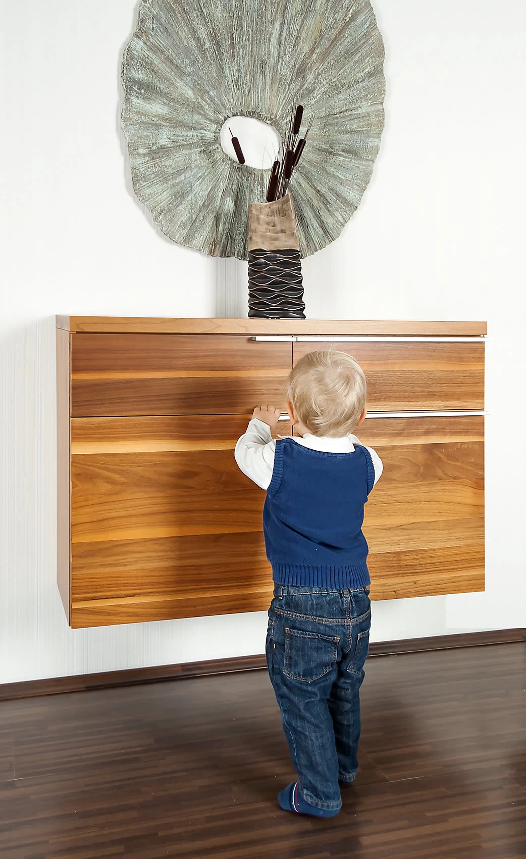 Diese Schubladen- und Schranktürsicherung von Reer lässt sich einfach durch ein speziell entwickeltes Klebeband an Ihren Möbeln befestigen. Ein fester Halt ist dadurch gesichert. Trotzdem lässt sie sich jederzeit wieder rückstandslos entfernen. Natürlich ist auch eine Befestigung mit Schrauben möglich.