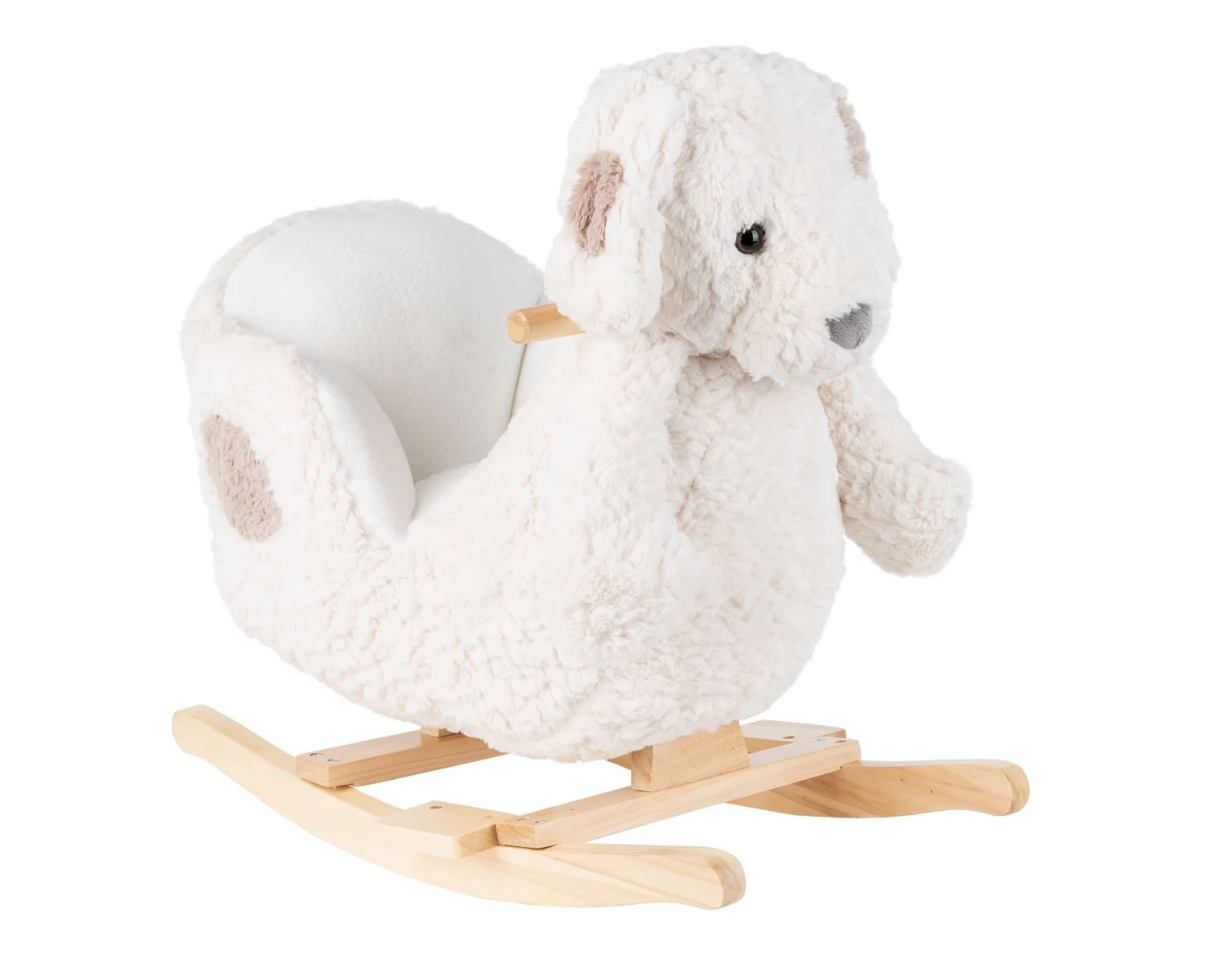 Besonderheiten Artikel Kikkaboo Schaukeltier Puppy mit Sitz, Rückenlehne, Kufen, Holzgriffe, Fußstützen