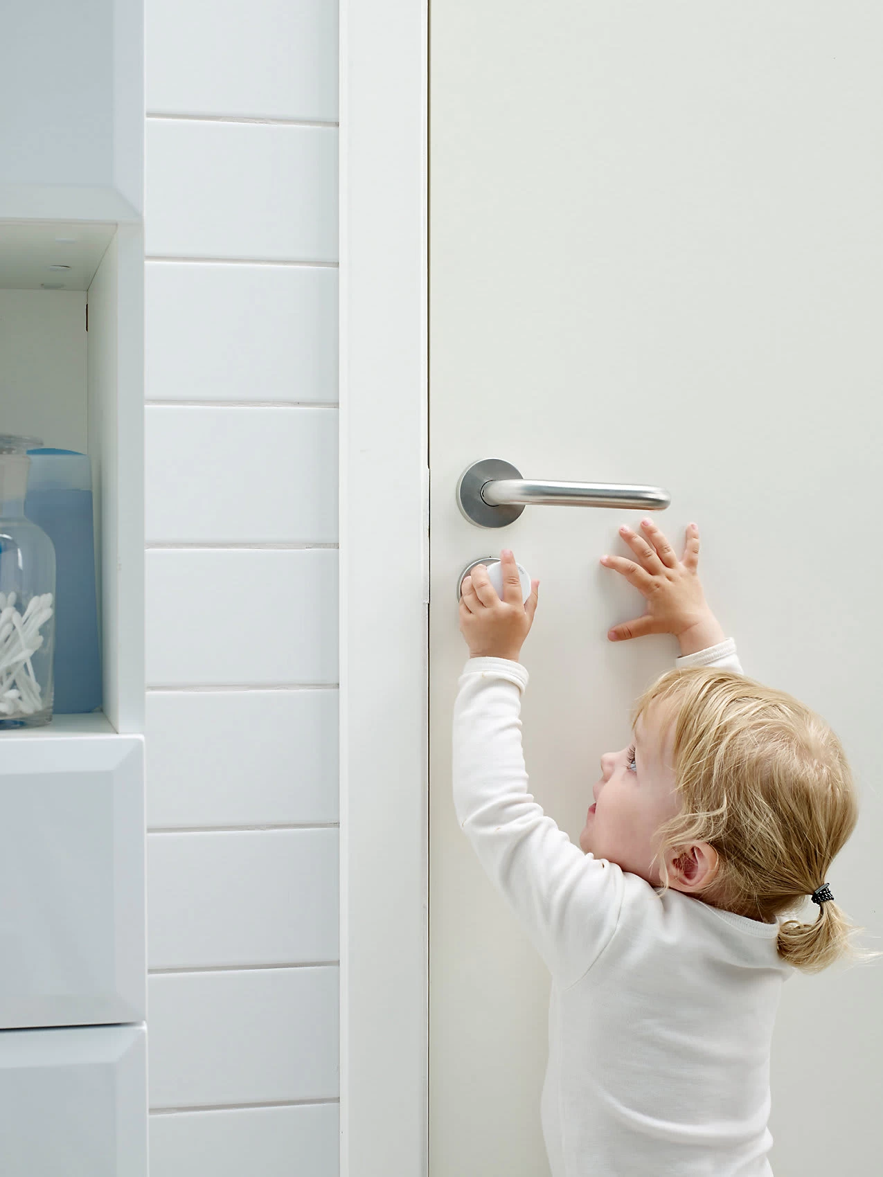 Dank des Doppelverriegelungsmechanismus‘ wird sich KeyGuard drehen ohne dass sich der Schlüssel dreht. Für Erwachsene ist es einfach durch Drücken und Drehen KeyGuard anzuwenden, aber Kleinkinder können dies nicht. Ein cleveres Hilfsmittel das zur Sicherheit Ihres Kindes beiträgt, im dezenten Design, das in jeden modernen Haushalt passt.