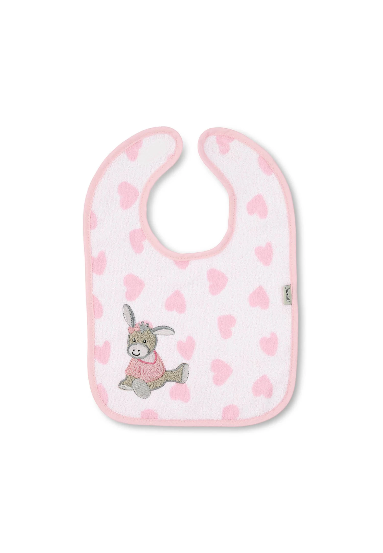 Das praktische Klettlätzchen, für einfaches An- und Ausziehen. Aus weicher Frotteequalität, mit Stickmotiv Esel Emmi Girl.
