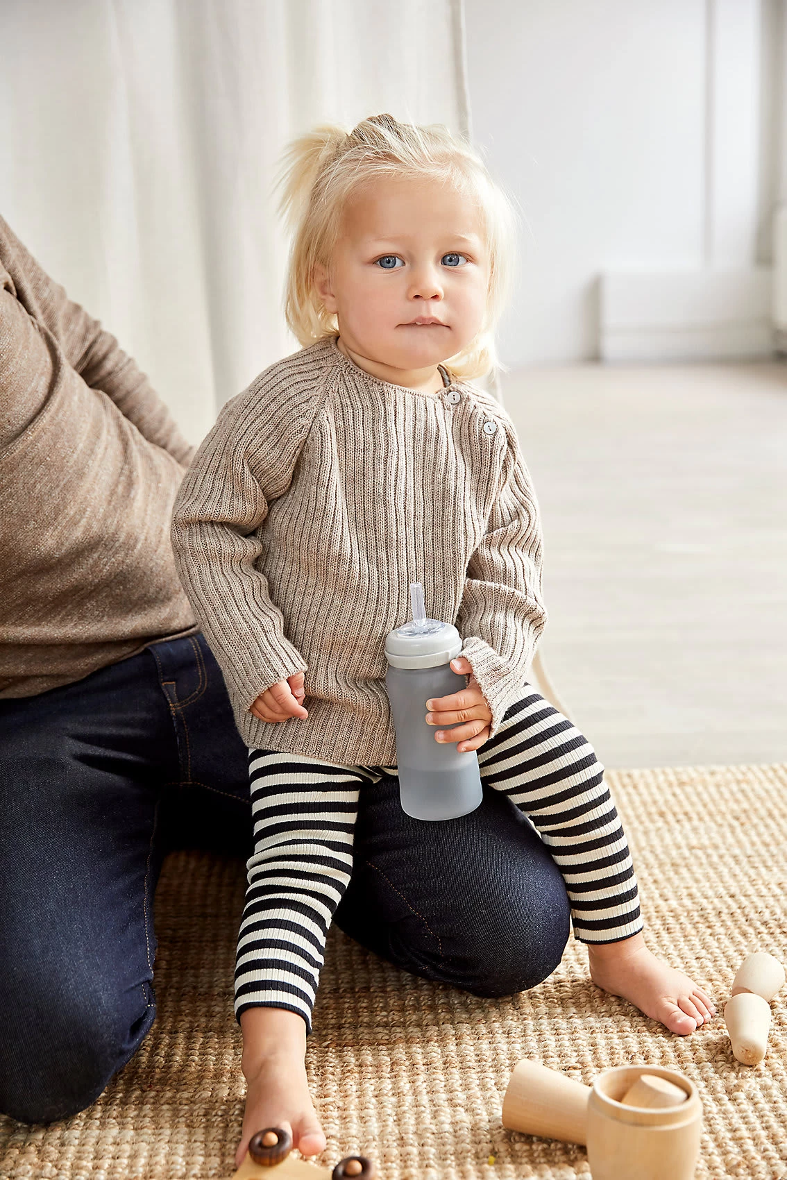 Mit der „Straw Bottle“ können kleine Kinder selbstständig trinken, ohne dass etwas daneben geht. Die Flasche ist sehr leicht und ergonomisch gestaltet, so dass sie ganz leicht von kleinen Händen gehalten werden. Der Trinkhalm besteht aus besonders weichem Silikon, damit das Trinken leichtfällt.