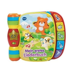 Mein erstes Liederbuch von vtech sorgt für Spannung und Abwechslung beim Spielen. Zusätzlich vermittelt es auf einfache Weise erste Lerninhalte. Lernspielzeug Mein erstes Liederbuch Sing- und Musiziermodus, 5 bunte Tasten, 7 Seiten mit Liedtexten (Sprache: Deutsch) sowie beweglichen Elementen zum Mitsingen und Zuhören geeignet ab 9 Monate bis 3 Jahre Das niedliche und kindgerecht gestaltete Büchlein lädt mit seinen 6 Melodien und ebenfalls 6 gesungenen Liedern zum Mitsingen ein. Das Gehör und die sprachlichen Fähigkeiten verbessern sich auf diese Weise deutlich. Die 5 am Rand liegenden Klaviertasten spielen verschiedene Instrumente ab, deren Unterschied das Kind schnell lernt. Auch Farben benennt das Spielzeug, die das Kleine bald eigenständig auseinanderhält.