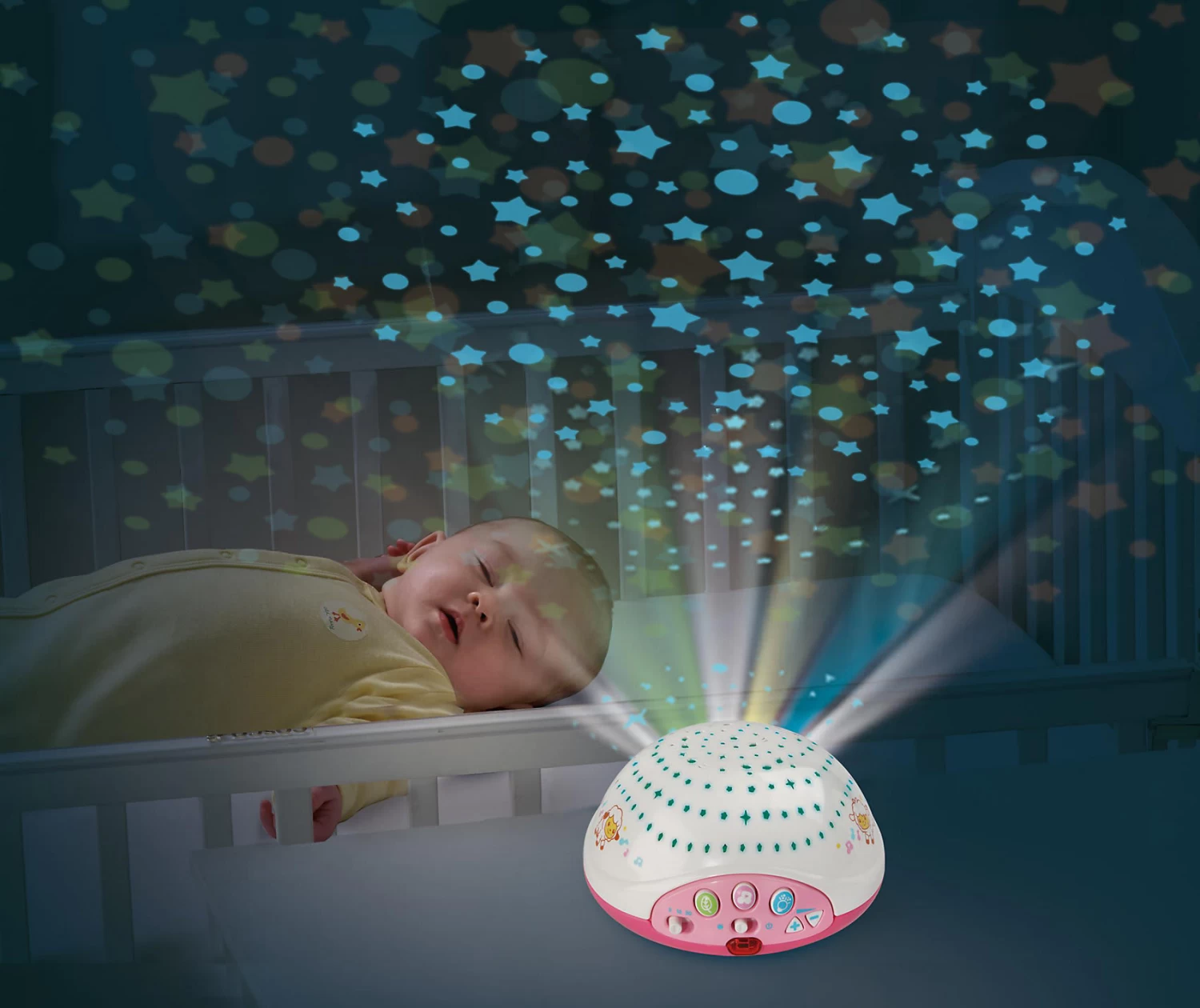 Dieses besonders bezaubernde Schäfchen-Mobile aus dem Hause Vtech hilft Babys dabei, beruhigt einzuschlafen! Das Mobile begeistert mit süßen Plüschschäfchen, vier Schlafliedern, vierzig Melodien und beruhigenden Naturgeräuschen, die Kinder sanft in den Schlaf wiegen. Für besondere Begeisterung sorgt der Sternenlicht-Projektor, der einen funkelnden Nachthimmel an die Zimmerdecke projiziert. Die Melodien schalten sich dank des Timers automatisch ab und schalten sich dank des Geräuschsensors wieder ein, sobald das Baby weint.
